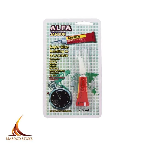 چسب قطرهای سوپر گلو 3 گرم آلفا، چسبی سریع، قوی و همهکاره برای چسباندن چرم، فلز، پلاستیک، چوب و …