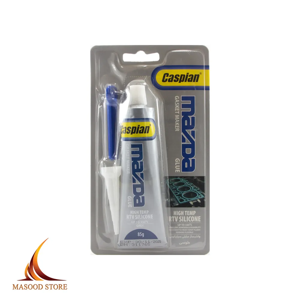 چسب واشر ساز مزدا کاسپین 85 گرم محصولی تک جزيی و بر پایه ی اپوکسی می باشد که پس از استفاده با ایجاد حالت لاستیکی در عایق بندی و آب بندی انواع صنایع از جمله خودرو به منظور آب بندی دیفرانسیل ، درب سوپاپ ، واتر پمپ و سر سیلندر کاربردی است . این چسب که از خانواده چسب های سیلیکونی حرارتی است تولید شده توسط شرکت خوش نام کاسپین و با مواد اولیه وارداتی است . از ویژگی های مثبت آن مقاومت در برابر سایش و خوردگی و مقاومت در برابر روغن ، ضدیخ و اسید است و با انعظاف پدیری بسیار بالا جایگزین انواع واشر ساز ها است که پس از گذشت مدت طولانی از خشک شدنش ترک نمیخورد و دوام عالی دارد . هم چنین جهت عایق کاری سطوح مختلف از جمله سیم های لخت ، شلنگ های نشتی دار آب و روغن هم قابل استفاده می باشد و بر انواع سطوج با جنس های مختلف مثل فلزات ، پلاستیک و لاستیک ، شیشه ، وینیل ، چرم ، پارچه ، چوب ، کاشی و سرامیک چسبندگی دارد و هم چنین اشتعال پذیر نمی باشد . خشک شدن اولیه ی آن پس از 10 دقیقه شکل می گیرد و خشکی کامل آن پس از 24 ساعت به وجود می آید رنگ آن به رنگ طوسی است و قابلیت تحمل دما تا 330 درجه سانتی گراد را دارد و بسته بندی آن 85 گرمی است .