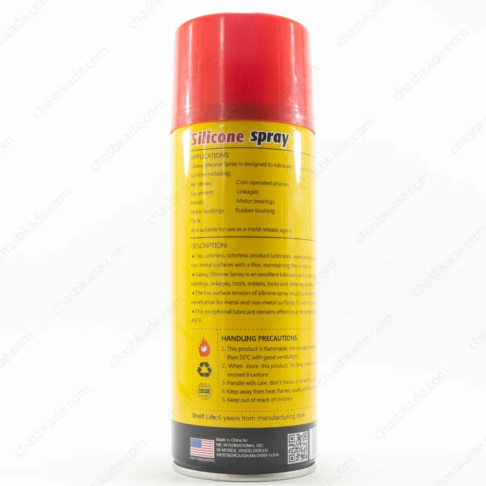 اسپری سیلیکون گلکسی یک روانکننده و محافظ ضدآب است که برای کاهش صدا، جلوگیری از زنگزدگی و بهبود عملکرد سطوح متحرک کاربرد دارد.