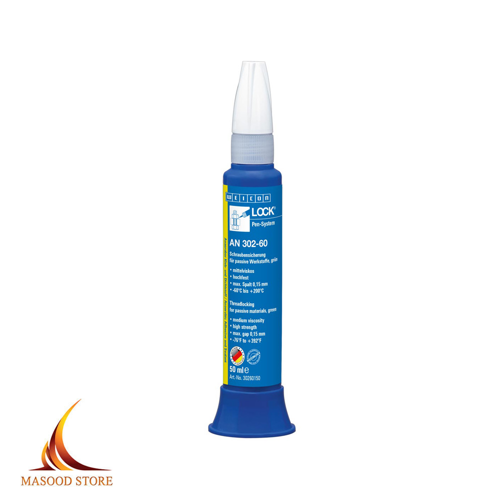 لاک آناروبیک ویکون AN302-60 یا چسب آب بندی غیر هوازی محصولی جهت آب بندی و گاز بندی تخصصی انواع رزوه ها است که توسط مهندسین آلمانی شرکت ویکون بر پایه رزین متاکریلات طراحی شده است . این محصول در درجه ی استحکام بالا و درجه ی غلظت آن نیز متوسط است که از لغزش و شوک در برابر ضربات فیزیکی به طور کامل و عالی جلوگیری می کند ولی برای جداسازی آن پس از خشک شدن به ایجاد حرارت در محل و استفاده از ابزار آلات نیاز دارید . مدت زمان خشکی اولیه آن ۵ تا ۱۰ دقیقه می باشد . که در این زمان شما فرصت ریگلاژ خواهید داشت . خشکی و سفتی نهایی چسب نیز پس از ۶ الی ۱۲ ساعت ظاهر می شود . حداقل دمای کاربری آن از ۶۰ – و حداکثر آن ۲۰۰ + درجه ی سانتی گراد می باشد و رنگ آن به رنگ سبز است . و البته مخصوص استفاده بر فلزات غیر فعال می باشد هم چنین دارای تایدییه آب آشامیدنی است .